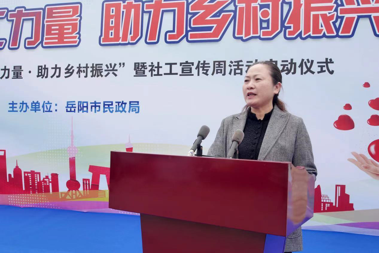 本次活动由岳阳市民政局党组副书记、副局长陈平主持,他在致辞中动员各级汇聚社工力量,投身乡村振兴工作,为“三区一中心”作出应有的贡献。