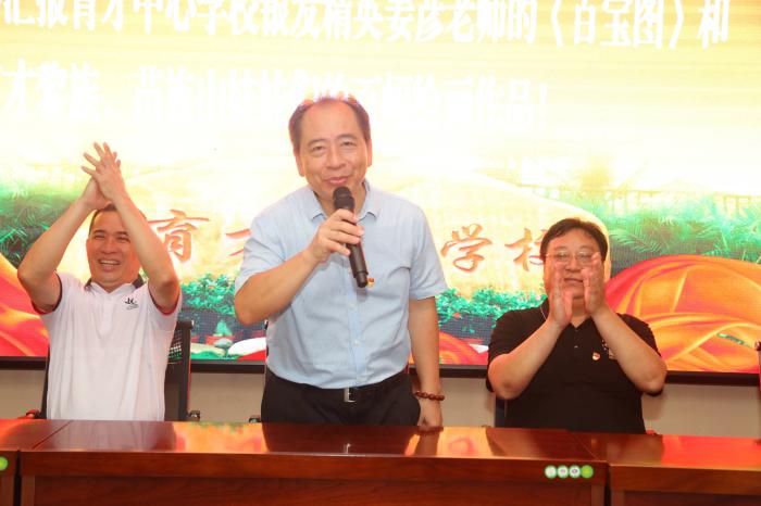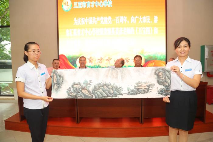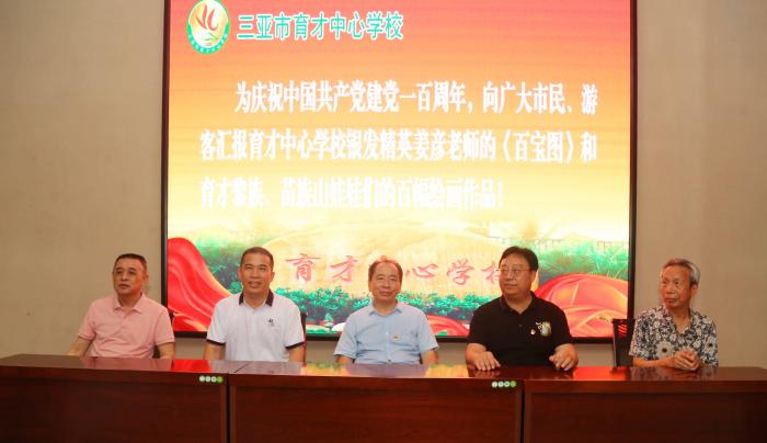 为庆祝中国共产党建党100周年,弘扬中华传统文化,向广大市民游客汇报三亚市育才中心学校姜彦老师的《百宝图》和学生的百幅习作,助力海南自贸港建设,促进三亚教育文化艺术事业的繁荣发展,由三亚市育才中心学校主办的“三亚市育才黎苗山娃百幅画作庆祝建党百年作品展”于2021年6月26日在三亚君和君泰文化大讲堂盛大开展。