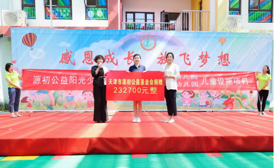 7月恰逢毕业季,幼儿园大班的小朋友们就要毕业了,这既是孩子们的毕业典礼也是一次爱心的传递活动,孩子们热情洋溢、天真烂漫,送上了一个又一个精心准备的节目。此次天津市源初公益基金会共为宝坻区潮阳幼儿园和中天幼儿园捐款23.27万元,用于为孩子们购买遮阳网和户外玩教具设施,改善幼儿生活学习环境。
