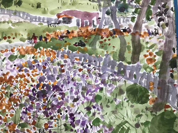 从心理维度看,彩梅火棘的性情或许不宜太多静思冥想,调养身心。多年来她在中国大地穿云破雾,遍览群芳,以其直面世事,直抒胸臆谈古论今,左涂右抹而更显意气风发,并由此尝到了人世生活的千般况味却依然如梦如幻,这使其语词文法总是热烈奔放,似乎脱不了文青感觉,葱葱郁郁而且玄想叠出,故总是忘忽所以憧憬着诗与远方。所以,她才如此钟情于碧水蓝天等意象排列组合,以光明心怀罗列美好的前景度化人文风物,用出淤泥而不染的活泼调性祝福人们守望相助,在更化中生生不息。